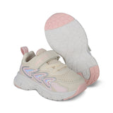 Tenis deportivos Coqueta para niña beige con detalles en los costados, que añaden un toque moderno y estilizado con tira de contacto y agujeta elástica, brindan un calce seguro y práctico. Su suela cómoda y ligera es perfecta para el parque.